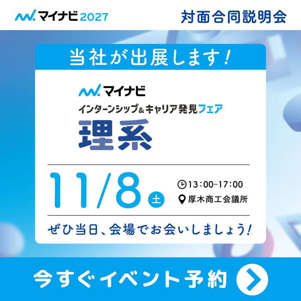 当社は、11月8日に厚木商工会議所で開催される「理系学生のためのインターンシップ&キャリア発見フェア」に参加します!