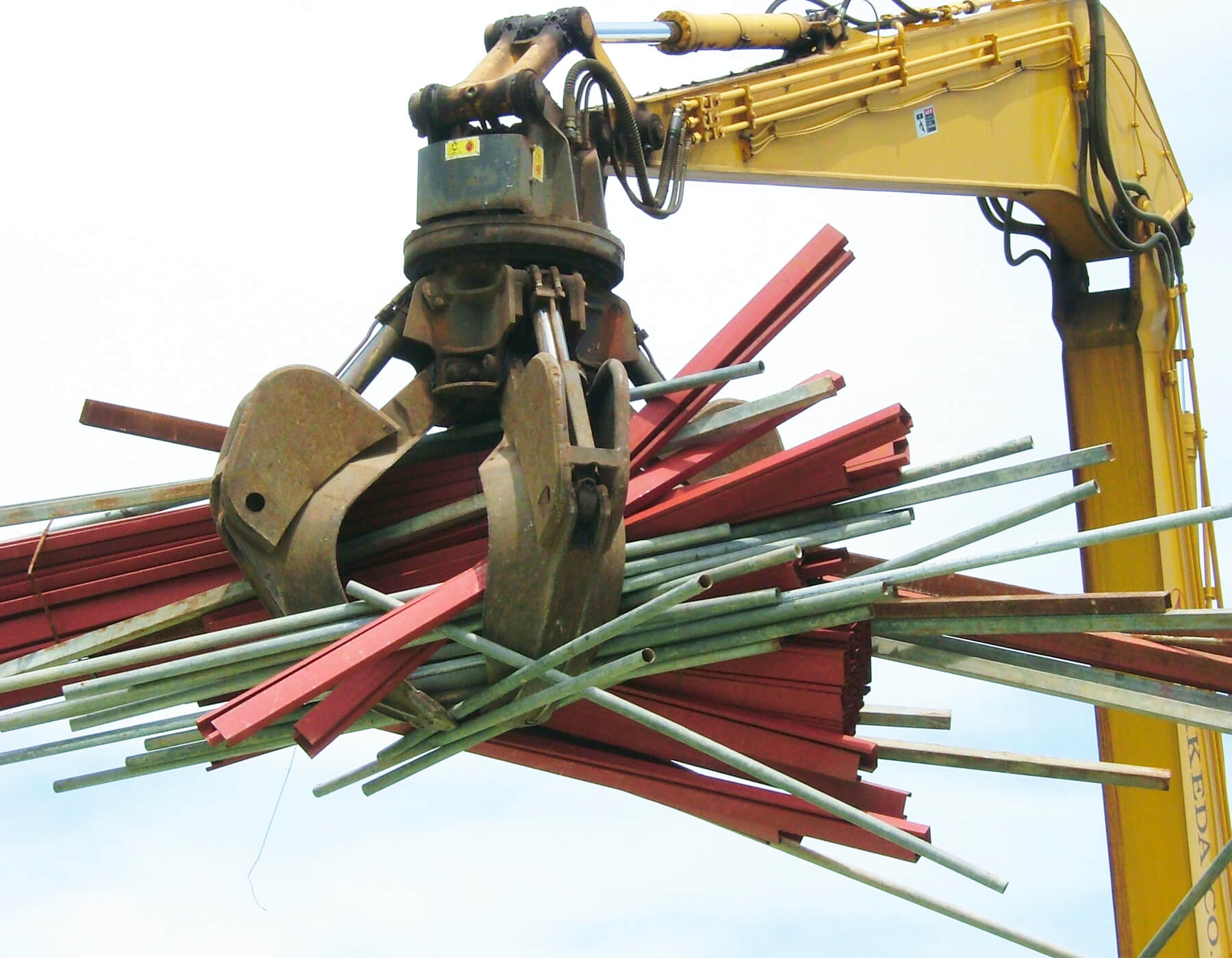 クランプアームを取り付け。自動車の解体準備、解体、分別、積み上げ作業をスピーディーに行えます。